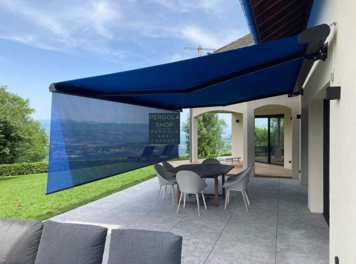 La Pergola avec store enrouleur motorisé pour protection solaire. Le store se déploie à l’horizontal ou en pente. L’installation peut être autoportée et/ou adossée, avec ou sans fixation murale. La toile est équipée du système de guidage par zip, qui limite le passage de l’air, des poussières, tout en offrant une meilleure tension de la toile.